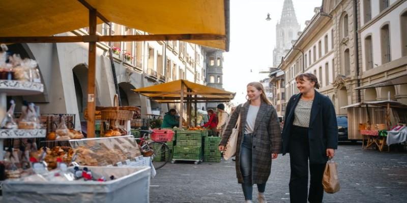 Suppose it's Saturday, head to the vibrant farmer's market at Bundesplatz. Stroll among stalls selling fresh produce, handcrafted goods, and local treats, mingling with friendly Bernese locals.