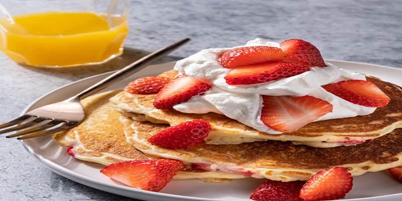 - Strawberry Pancakes – Soft and fluffy pancakes topped with farm-fresh strawberries and syrup.